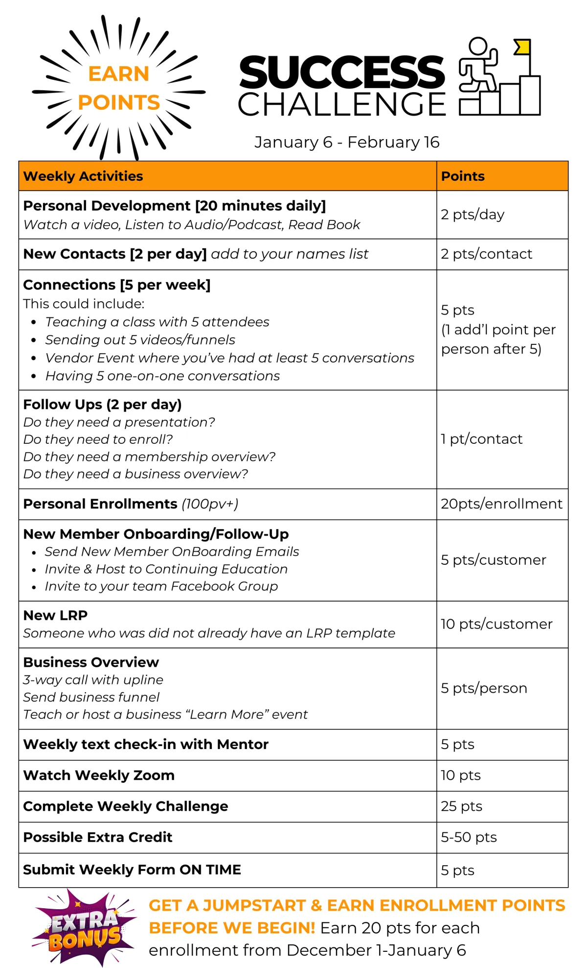 In order to earn connection points, you need to have a minimum of 5 connections per week. If only 3 people showed up to your class, don't worry, schedule 2 one-on-ones or send 2 funnels. If you have MORE than 5, you can earn 1 point per connection.